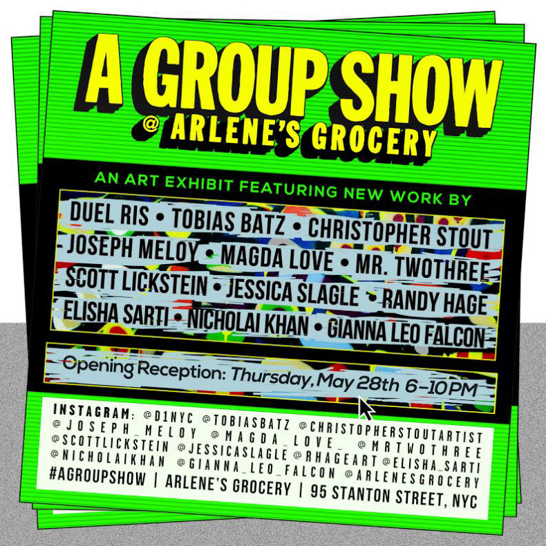 Join us this Thursday evening for the opening reception for “A Group Show” at Arlene’s Grocery in NYC’s Lower East Side. I will be exhibiting a new painting alongside some truly great artists.